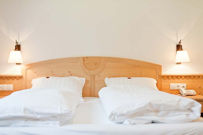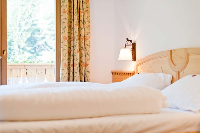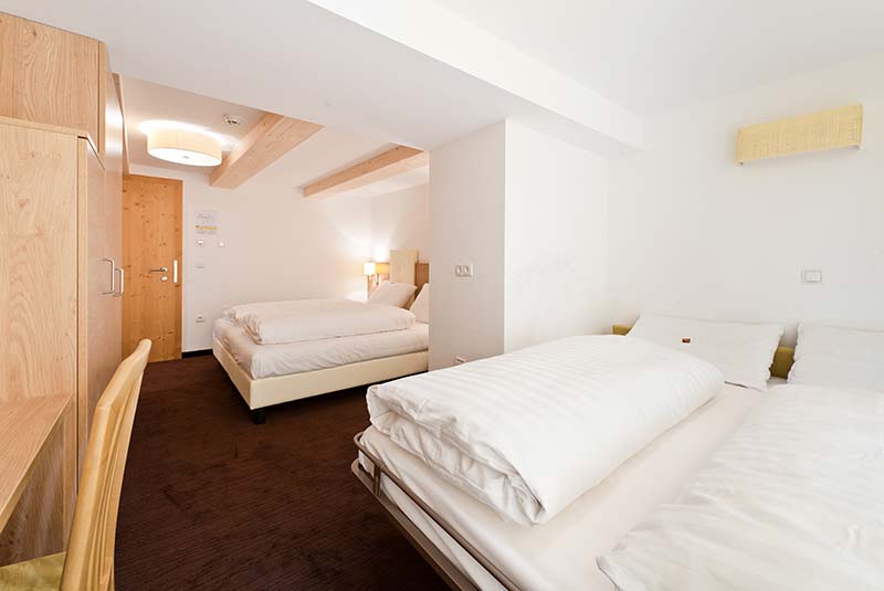 Le nostre camere ristrutturate in legno di abete evaporato e parquet in rovere sono rivolte verso le montagne e quindi lontane dalla strada. Se desideri una camera tranquilla, la scelta giusta è una stanza Comfort. Dotazione: scrivania, cassaforte, collegamento Internet, TV satellitare HD 26”, armadio, divano e guardaroba, stanza da bagno con ampia doccia e/o vasca, asciugacapelli, lavandino e WC, alcune con bidet, balcone con sedie. Questa camera può essere occupata anche da tre o quattro persone.